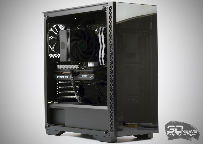Очевидно, сборка системы с привязкой к цене — это больше спортивная составляющая. Никто не мешает вам собрать персональный компьютер так, как душе угодно. Это — еще одно достоинство десктопов, которое, впрочем, тоже оспаривается фанатами игровых консолей. Для этой статьи мы провели ряд тестов, используя три системных блока. Одна из его итераций выглядит так, как показано на фото выше. Список комплектующих составлен следующим образом: