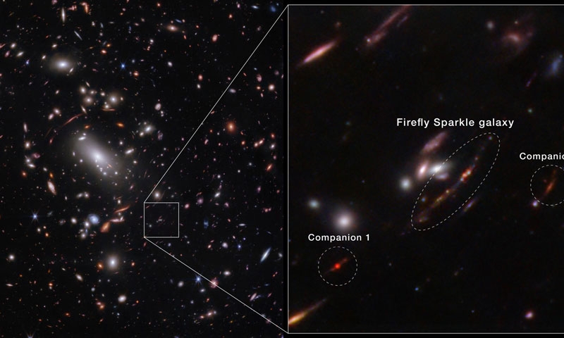 Галактика Firefly Sparkle наблюдается через 600 млн лет после Большого взрыва. У неё определено 10 отчётливых зон активного звездообразования. Каждая из зон имеет массу от 105 до 106 солнечных масс. Эти наблюдения дают науке первое спектрофотометрическое представление о типичной галактике на ранних стадиях её развития во Вселенной. У галактики Искорка Светлячка даже есть две сопутствующие карликовые галактики, роль которых для Млечного Пути исполняют галактики Большое и Малое Магеллановы Облака.