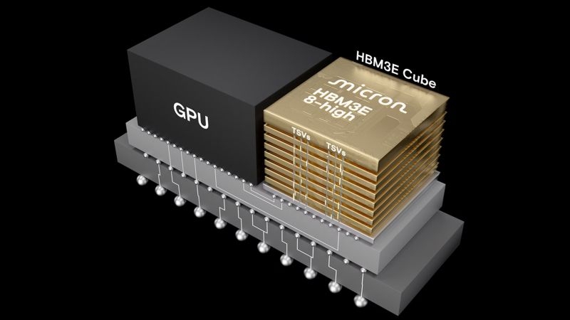 Данная часть стека памяти лежит в его основе и содержит базовую логику, необходимую для работы с расположенными выше микросхемами памяти. Micron собирается наделять базовый кристалл HBM4E тем набором функций, который интересен конкретным крупным заказчикам. Насколько велика будет степень свободы Micron в этой сфере, заранее сказать сложно, но очевидно, что стандарты JEDEC будут определять какие-то рамки. Чисто технически Micron сможет добавлять поддержку новых интерфейсов, увеличивать объём кеша, добавлять шифрование данных и всё в таком духе.