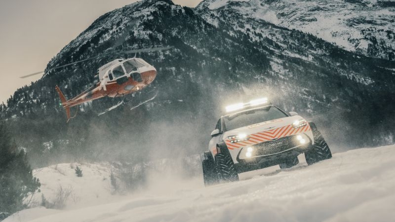 Построенный в единичном экземпляре кроссовер сохранил высокий комфорт в салоне, но в его задней части разместилось различное оборудование, включая медицинскую технику, которая может быть востребована при проведении поисково-спасательных операций в горной местности. Вместо колёс машина передвигается на гусеничных движителях, которые позволяют ей перемещаться даже по глубокому снегу. Правда, частью исходной динамики электрическому кроссоверу ради безопасности и комфорта пассажиров придётся в таких условиях пожертвовать, да и радиус поворота из-за такой трансформации обычно уменьшается. Зато, как отмечается в пресс-релизе, такое транспортные средство не загрязняет окружающую среду выхлопными газами и шумит меньше, чем техника с ДВС.
